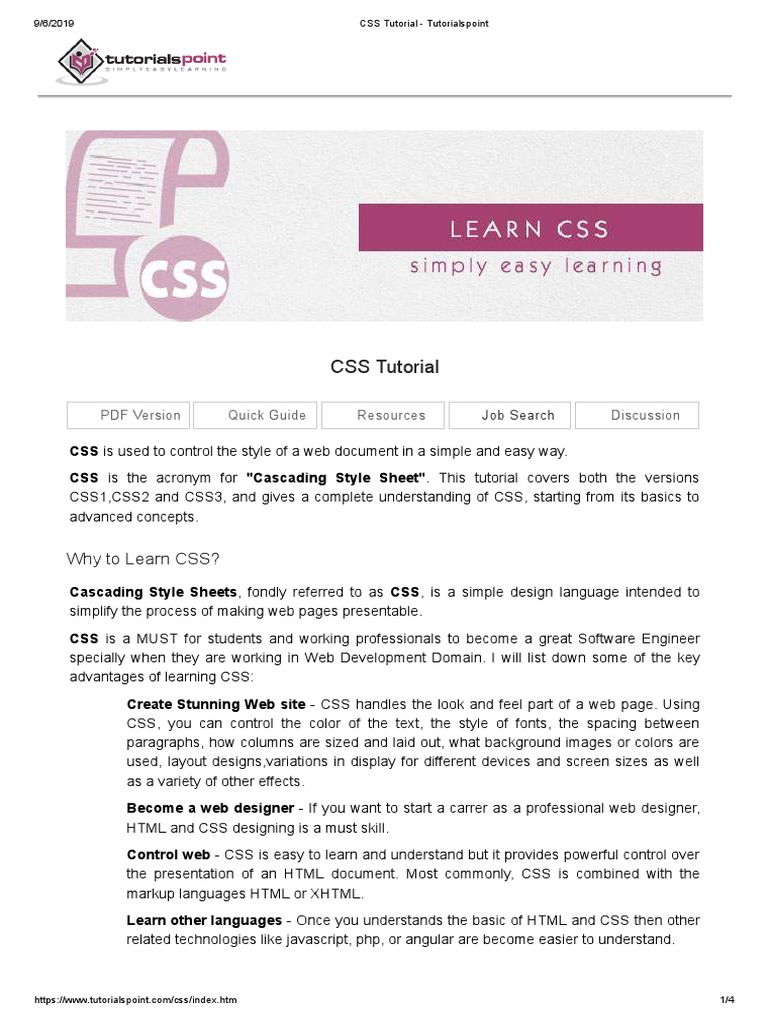 Tutorials Point Simply Easy Learning 2 P a g e Pages load faster - If you are using CSS you do not need to write HTML tag attributes every time. All you need to do is download the training document open it and start learning htmlcss for free. FREE DOWNLOAD CSS TUTORIALS POINT PDF.